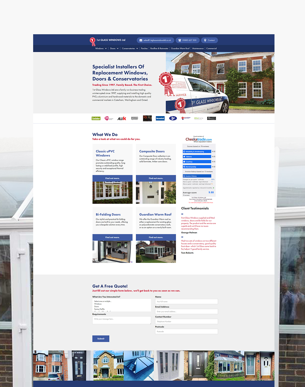 We decided to make the website service led, highlighting all of the different products 1st Glass Windows can install for their customers clearly, and quickly.